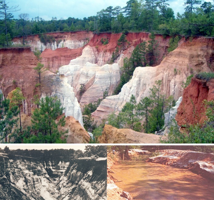 Od r. 1820 nasledujúc výrub stromov (ktorých korene upevňujú pôdu) kvôli pestovaniu plodín ako bavlna a kukurica pripravil začiatky prudkej erózie, keďže krajina bola odhalená ničivým účinkom pretekajúcej vody počas častých silných búrok.